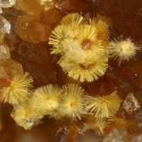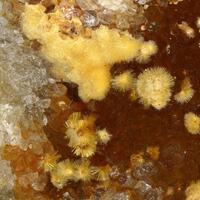 Fine specimen richly decorated with yellow cacoxenite crystal aggregates on matrix.