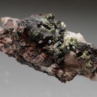 Green olivenite from the Tsumeb mine, Namibia on matrix.