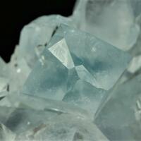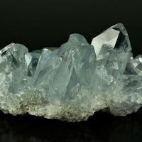 Aggregate of glassy gemmy celestine crystals of a characteristic blue colour and gorgeous transparency. Acquired in 23/6/1994. Ex Gustaf collection #385, with his handwritten label.