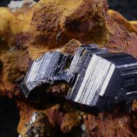 Spectacular group of twinned rutile crystals on limonite matrix from this famous Zambian site.