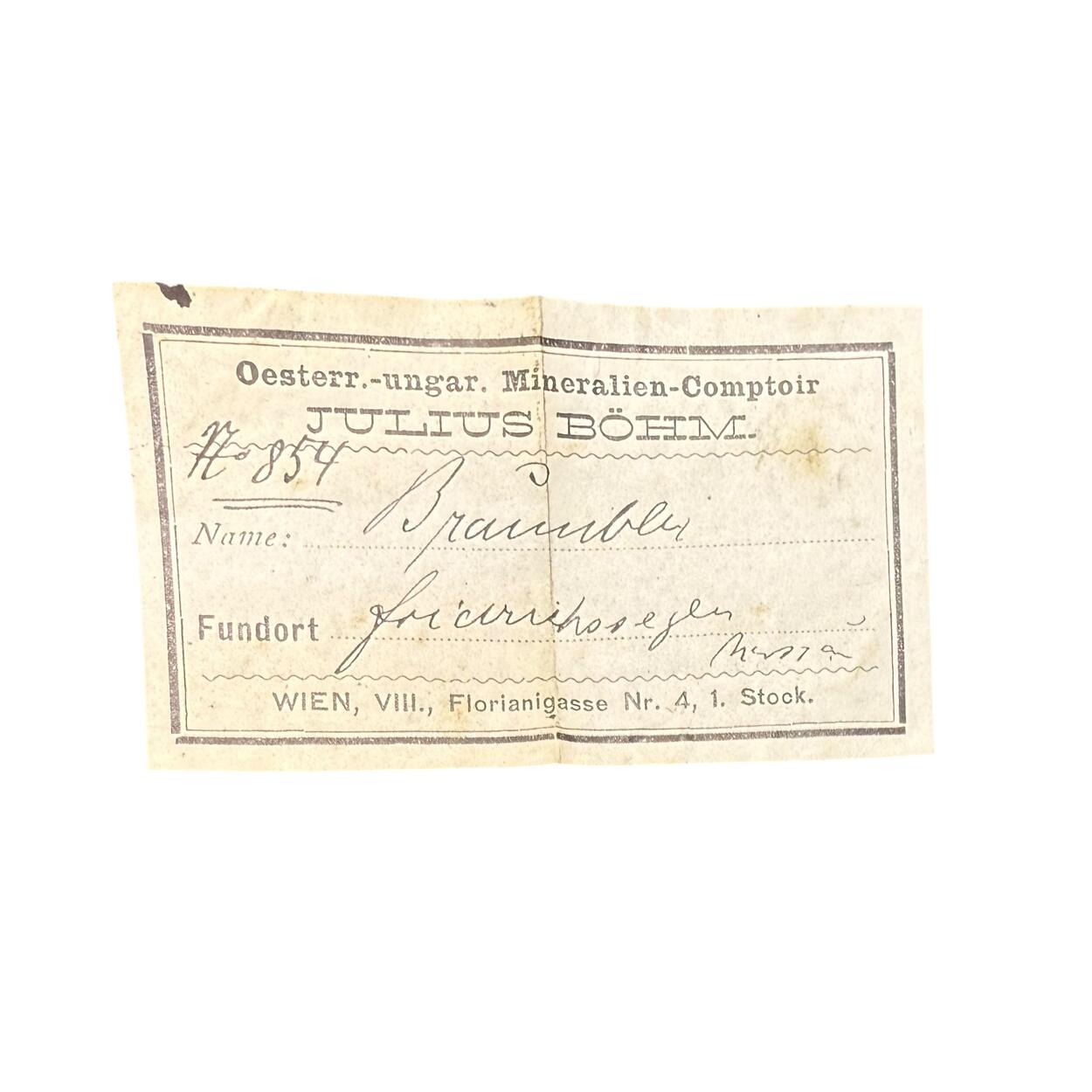 This specimen comes from an Educational collection TVM purchased in Austria in 2006 - the collection was assembled just prior to WWI...