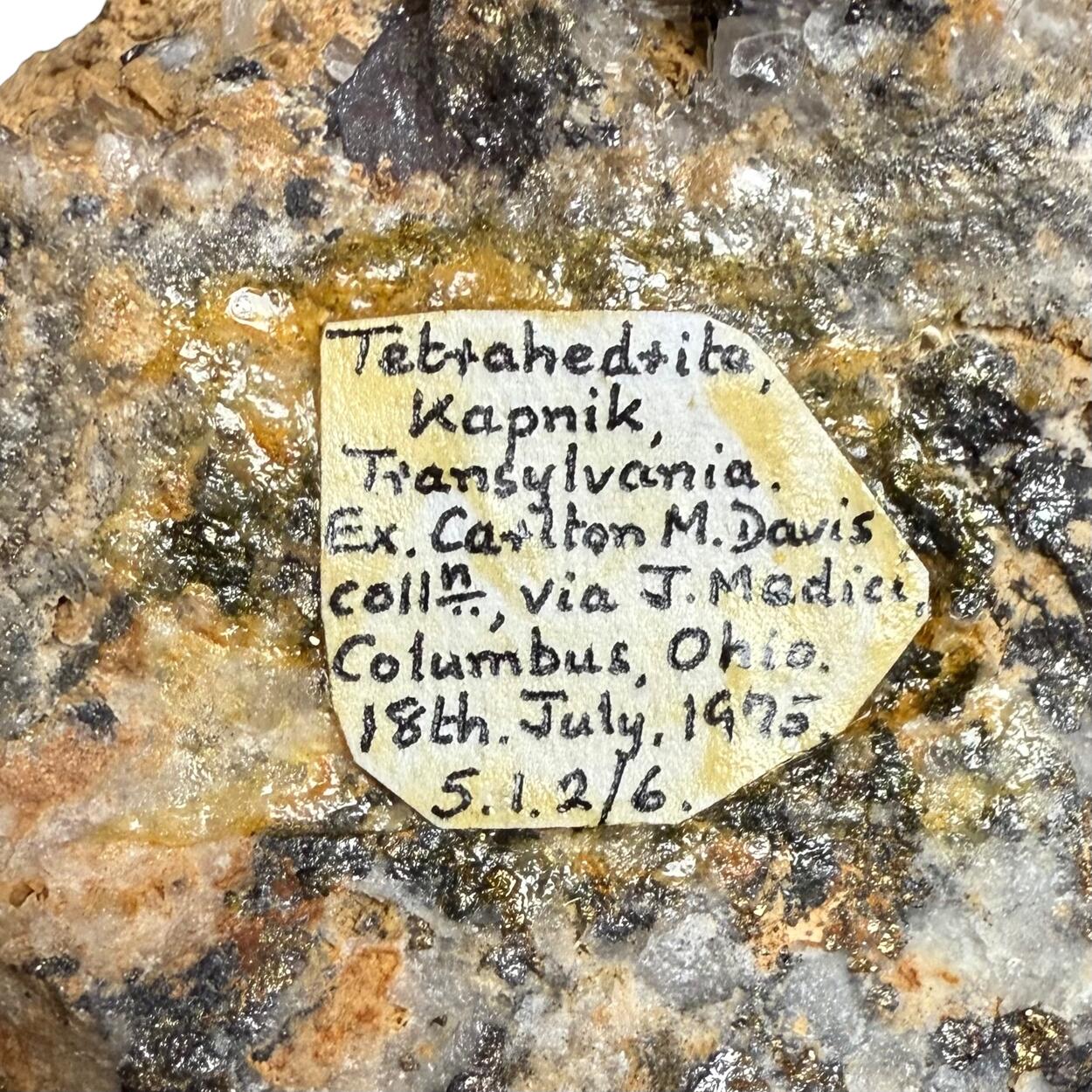 Accompanying the specimen is a matching Carlton Davis label.